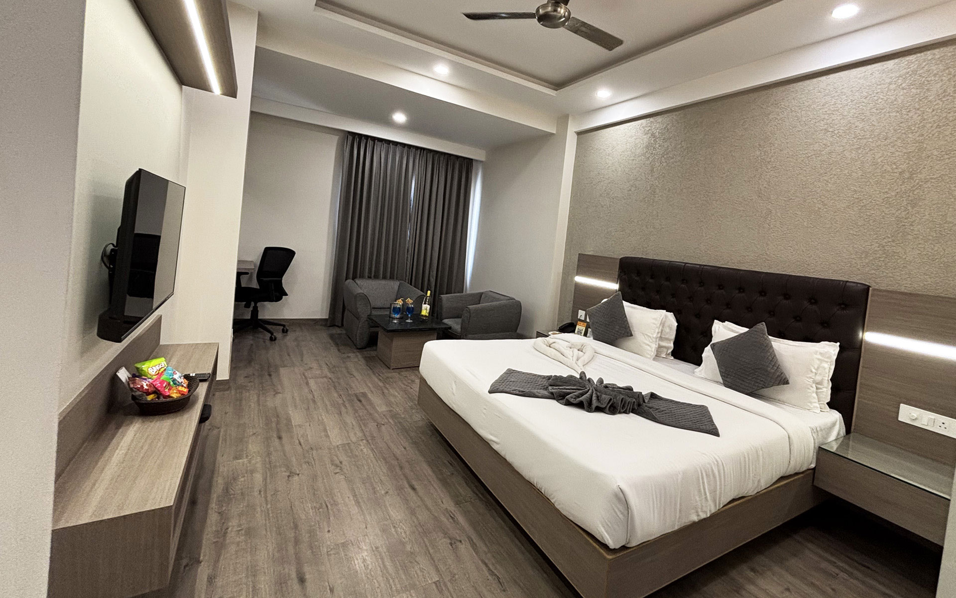 Experience elevated comfort in our 322 sq ft Executive Room — thoughtfully designed for a more spacious, refined stay. With air conditioning and modern furnishings, it offers a balance of style and relaxation.