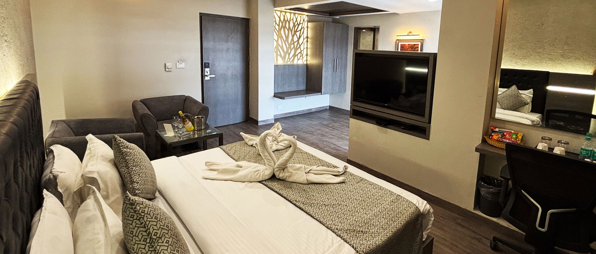 Experience elevated comfort in our 350 sq ft Club Room, designed for a spacious and stylish stay. Enjoy a separate shower area and a 150 sq ft private balcony with stunning city views, perfect for unwinding.